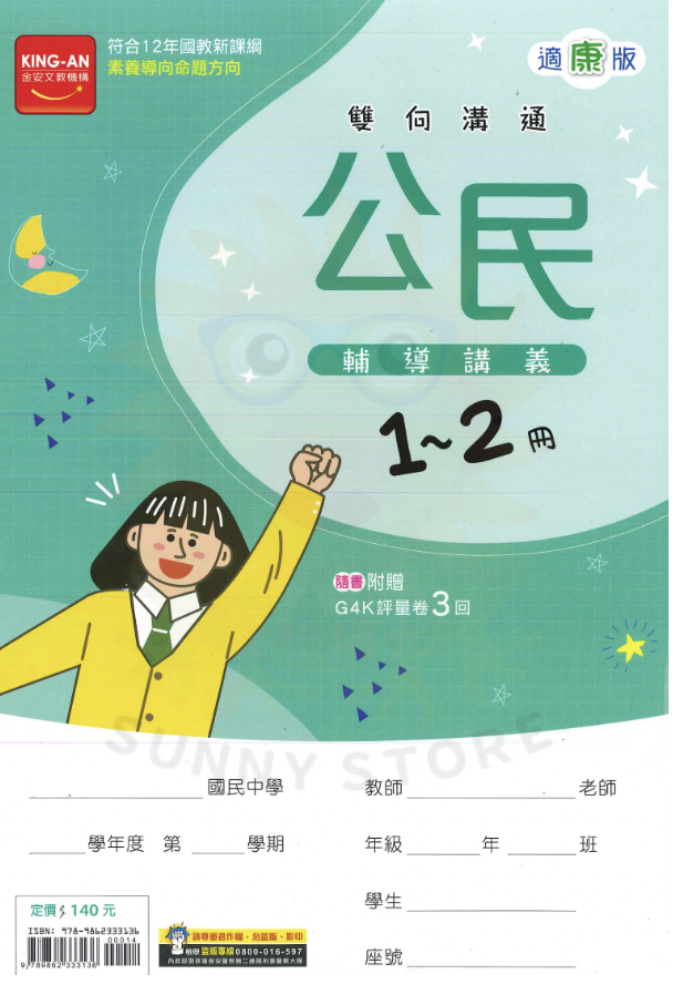 金安 雙向溝通輔導講義公民適翰版(1-2冊)