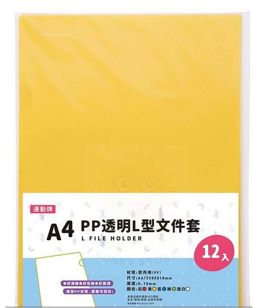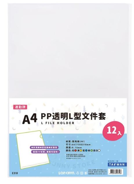 連勤E310 A4 PP透明L型文件套/L夾12入0.15mm