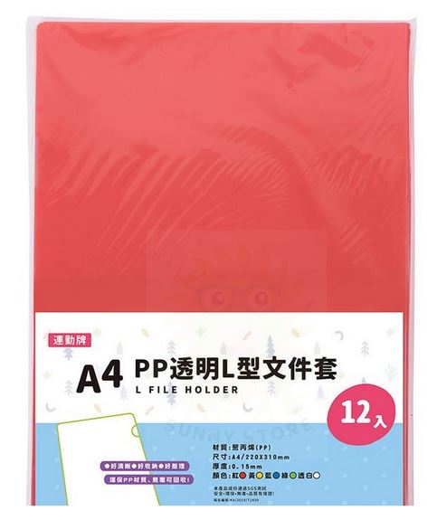 連勤 E310-R A4 PP L型文件套/L夾12入-紅色0.15mm