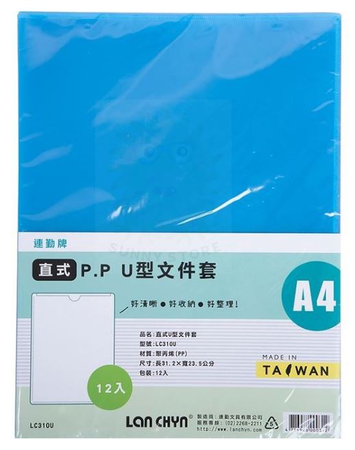 連勤LC-310U B PP直式U型夾U夾-藍12入/包