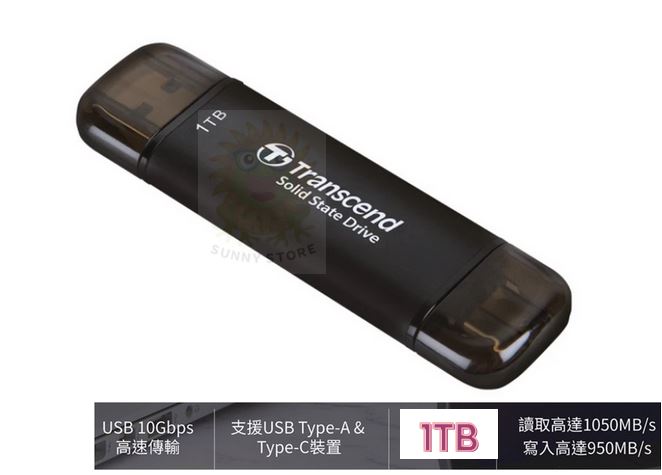創見1TB雙介面外接SSD行動固態硬碟-黑(TS1TESD310C)
