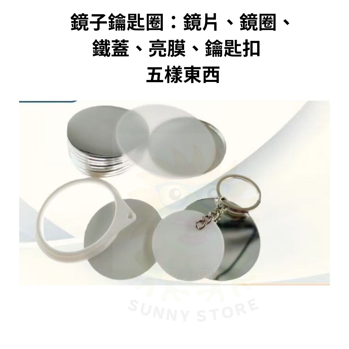 SG 胸章鏡子鑰匙圈材料100入:鏡片+鏡圈+鐵蓋+亮膜+鑰匙扣