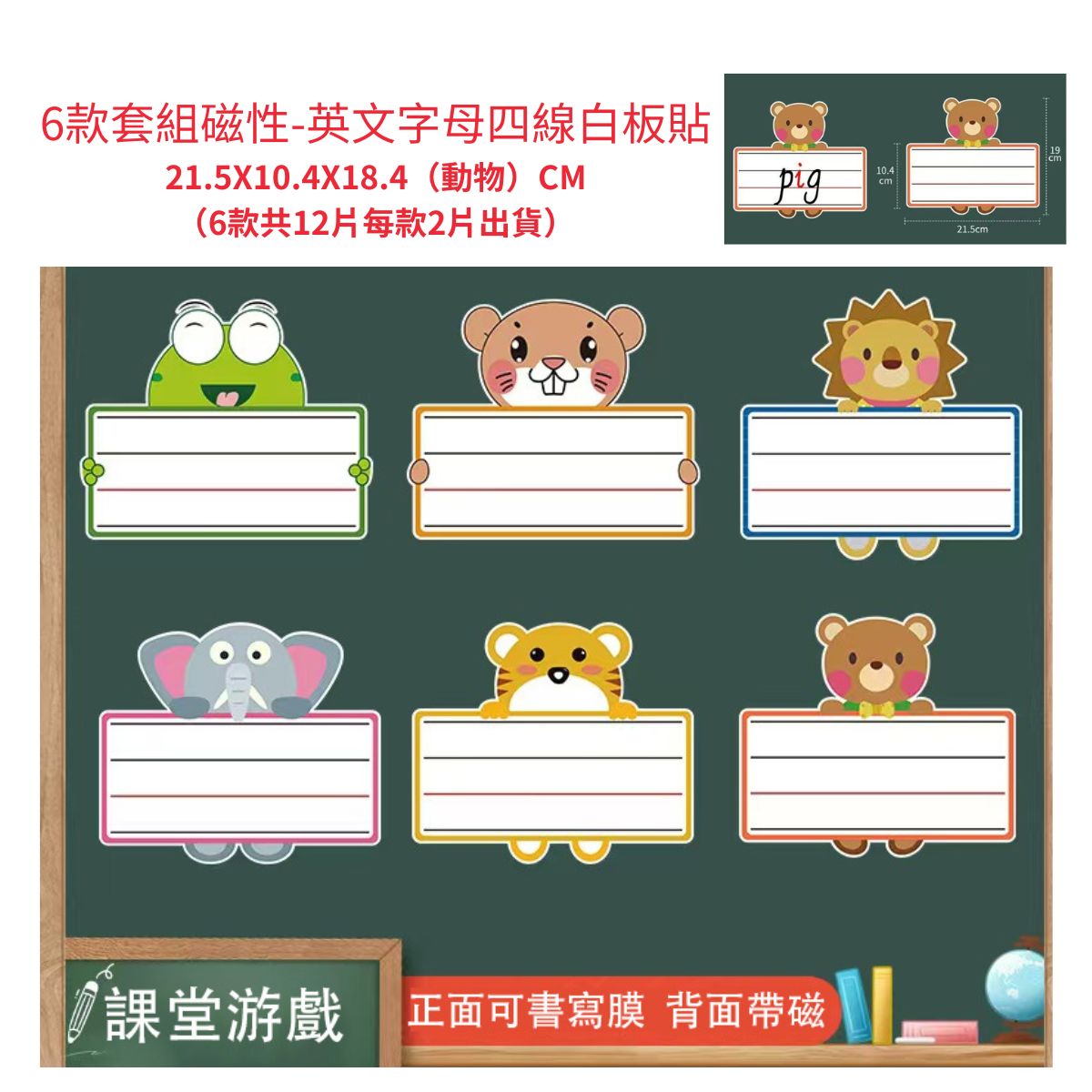 SG 動物造型-全白白板貼4片(款)一套出貨