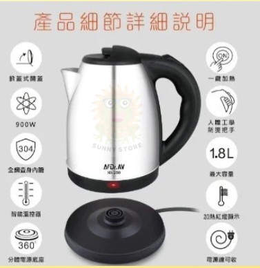 聖岡NX-250不鏽鋼快煮壺1.8L 900W快速加熱自動斷電