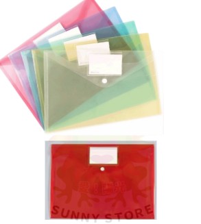 SG A4按扣鈕扣標籤透明文件袋檔案資料袋-紅色
