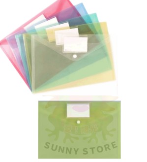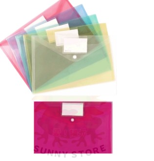 SG A4按扣鈕扣標籤透明文件袋檔案資料袋-粉紅色