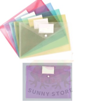 SG A4按扣鈕扣標籤透明文件袋檔案資料袋-紫色