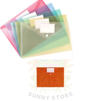 SG A4按扣鈕扣標籤透明文件袋檔案資料袋-橙色
