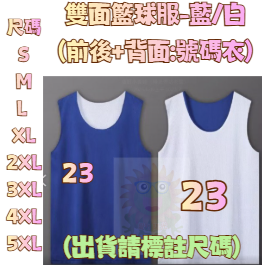 SG籃球球衣籃球背心雙面穿球衣-藍+白(正面背面號碼衣)出貨請標尺碼+號碼在備註區