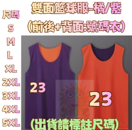 SG籃球球衣籃球背心雙面穿球衣-橘+紫(正面背面號碼衣)出貨請標尺碼+號碼在備註區